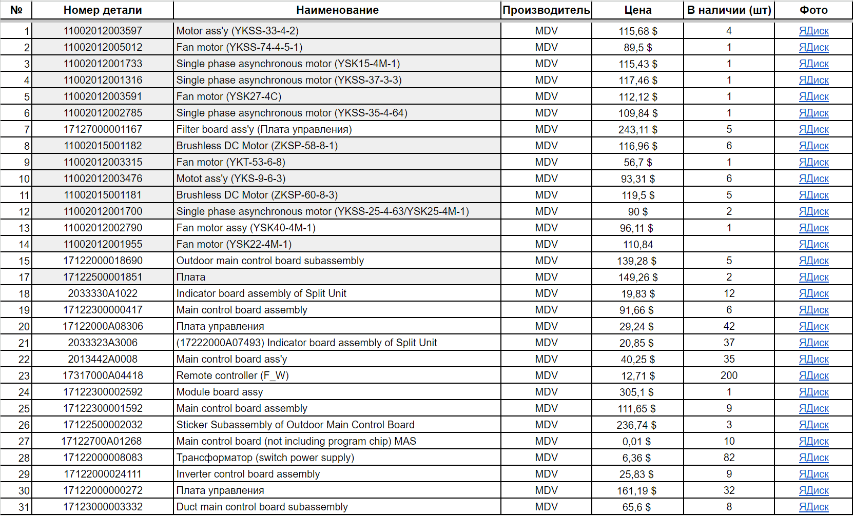 | 201400602920 (11103010000845) | Компрессор | MDV | 232,28$ |